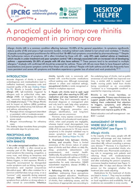 Desktop Helper No. 20 - A practical guide to improve rhinitis management in primary care