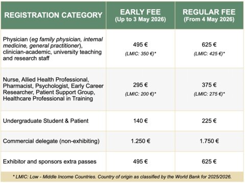 - Late breaking abstract deadline: 19 April 2026. This is only for new data and is limited to 10 abstracts. For these submissions a fee of €50 is charged, which has to paid before the abstract is accepted.
