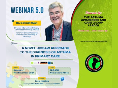 IPCRG colleague Dermot Ryan will be presenting at the Asthma Awareness and Care Group's new webinar. The session will take place online at 14:00 West Central Africa Time and can be accessed by joining the Zoom link below: