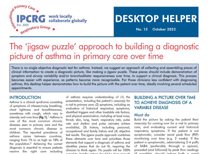 - The ‘jigsaw puzzle’ approach to building a diagnostic picture of asthma in primary care over time (Desktop Helper No. 15)