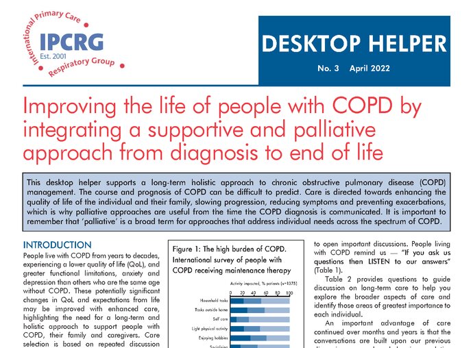 - Improving the life of people with COPD by integrating a supportive and palliative approach from diagnosis to end of life (Desktop Helper No. 3)