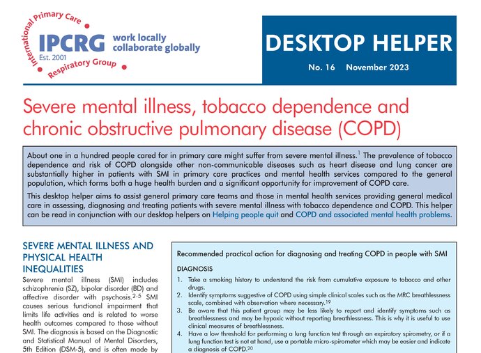 - Severe mental illness, tobacco dependence and chronic obstructive pulmonary disease (COPD) (Desktop Helper No. 16)