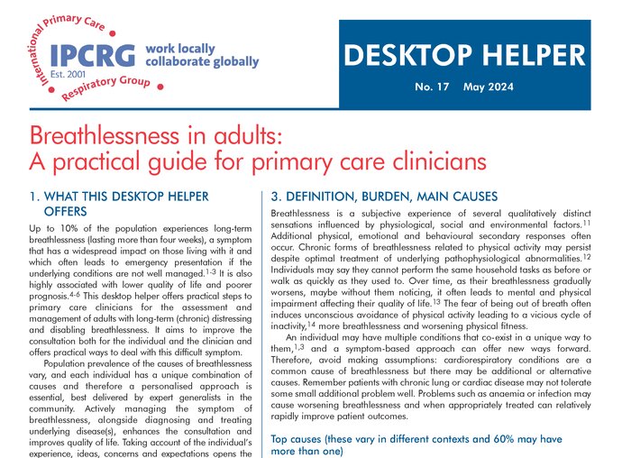 - Breathlessness in adults: A practical guide for primary care clinicians (Desktop Helper No. 17)
