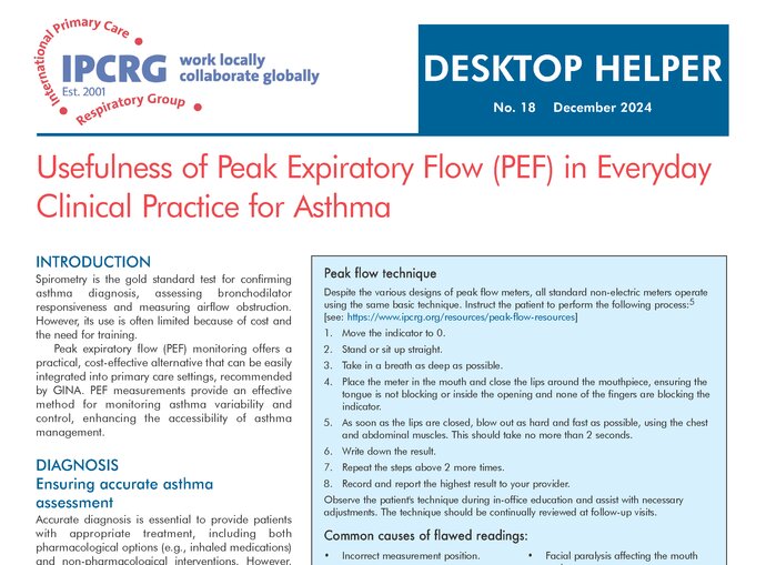 - Usefulness of Peak Expiratory Flow (PEF) in Everyday Clinical Practice for Asthma (Desktop Helper No.18)