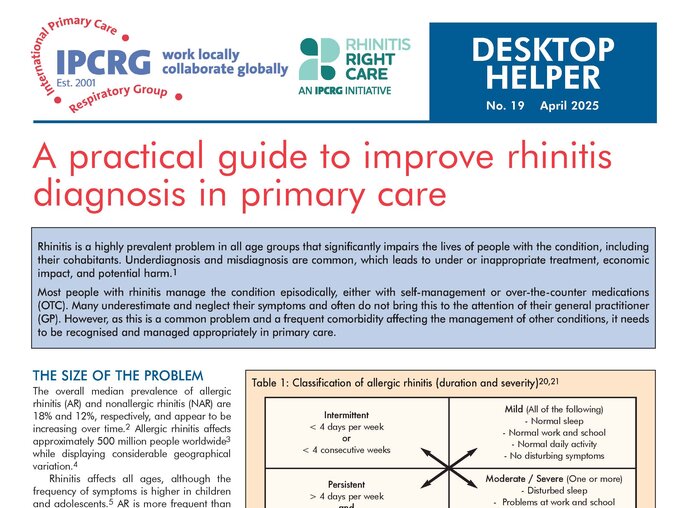 - A practical guide to improve rhinitis diagnosis in primary care (Desktop Helper 19)