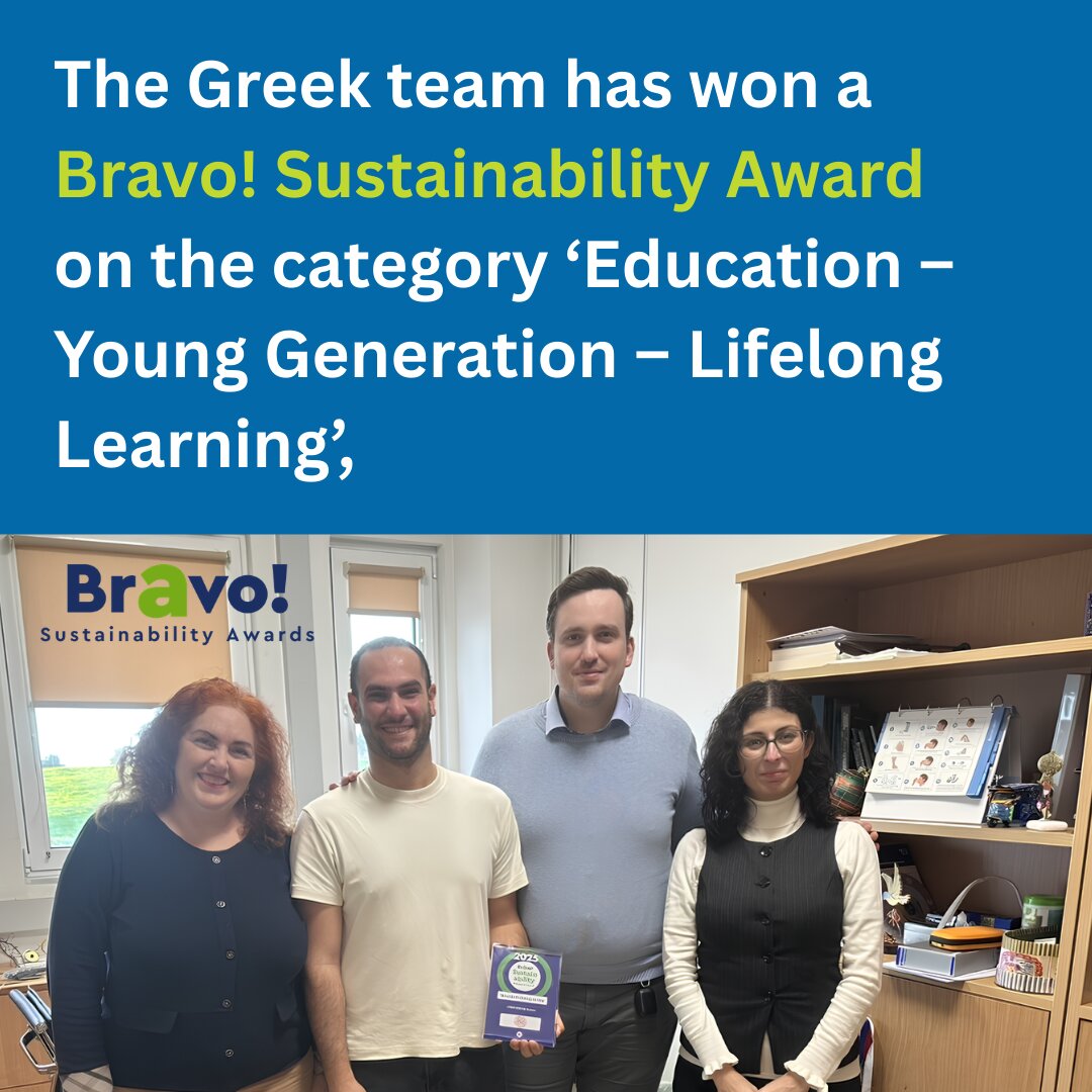 The work developed by the Greek team has been recognised with a Bravo! Sustainability Award in the thematic area ‘Education – Young Generation – Lifelong Learning’, highlighting the team’s innovative and impactful contribution to promoting sustainable development.